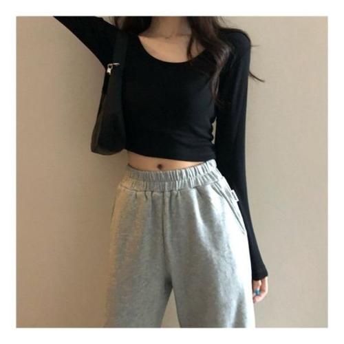 [엄지척]여자 스퀘어넥 크롭 무지 긴팔 티셔츠 데일리 상의_19609866_667501