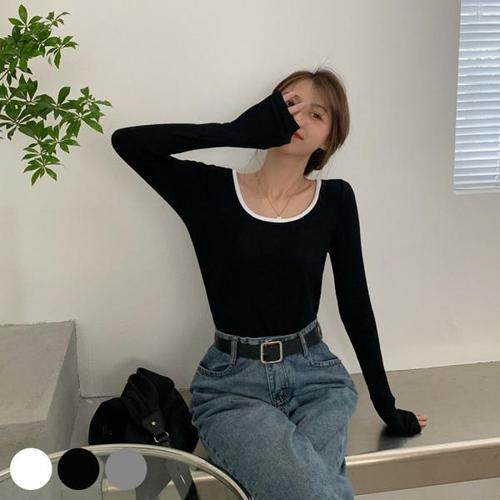 [오너클랜]인기상품 넥라인 크롭한 기장 긴팔티 URD255 무지 U넥 맨투맨 [WFG1UXE_250918]