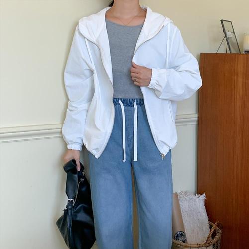 [옷자락] 여자 무지 베이직 바람막이 후드집업