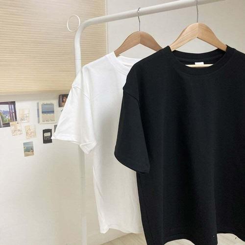 여자 데일리 캐주얼 오버핏 스타일 무지 반팔 티셔츠 여성 U넥 라운드 반팔티 이너 여름