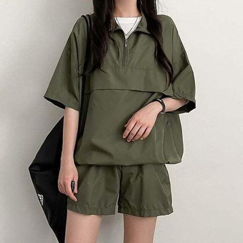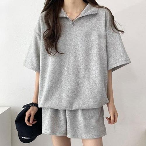 [의류] 여자 반집업 반바지 아노락 셋업 루즈핏 무지 홈웨어