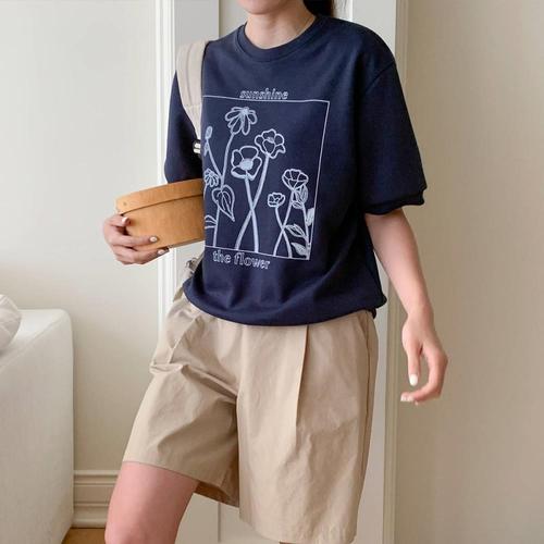 반팔 여성 라운드 여름 무지 슬림핏 티셔츠 U넥 기본 5부티셔츠 면티