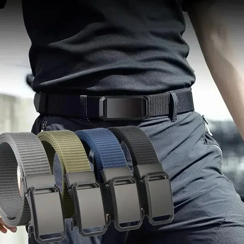 남성용 자동 버클 캔버스 전술 벨트 내구성 있는 캐주얼 아웃도어 사냥 모험 훈련 바지 벨트 조절 가능한 허리 벨트