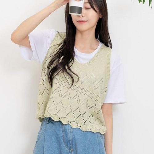 [엄지척]니트조끼 조끼 레이어드 물결무늬 크롭 밑단_20360179_667501