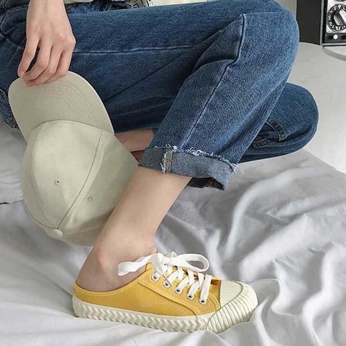봄나들이패션 여성 뮬스타일 봄신발 발편한 운동화 끈없는 캔버스 신발 스니커즈 캔버스뮬 캐주얼 블로퍼뮬