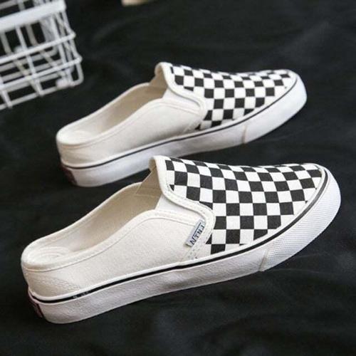 [셀럽하우스]남성 HXVEKSYG 체크단화 체크 캔버스화 뮬 남자 슬립온 화이트