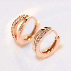 남주 여성용 14k 더블라인 큐빅 미니 링 원터치 귀걸이