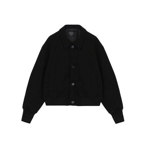 카라넥 크롭 모직기모 바시티 단추 자켓 점퍼 미니멀 블루종 스트릿