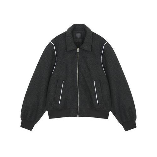[디바옴므]겨울 카라넥 모직기모 삥줄 크롭 집업 미니멀 오바핏 자켓 점퍼