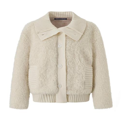 [미니멈에브리데이][미니멈 에브리데이]하이넥 니트 배색 버튼업 부클 자켓 (EB4JK014D)