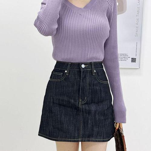 [다잇템]여자 봄 심플 A라인 생지 청치마 미니스커트