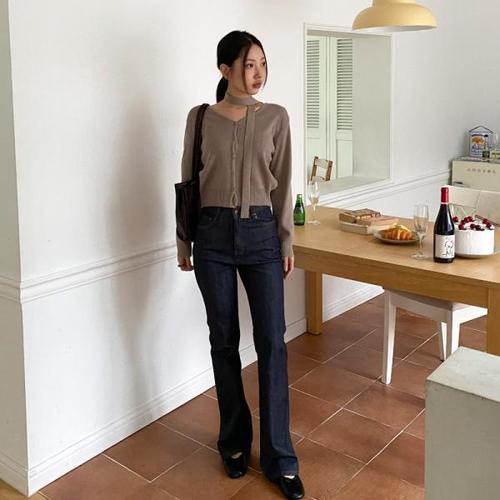 [옷자락]여자 편한 클래식 나팔 생지 미니멀리즘 면원단 데님팬츠