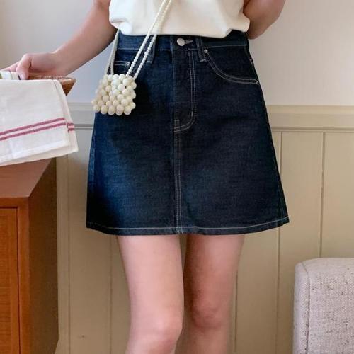[옷자락]여자 미니멀리즘 생지 진 데님스커트 SS 에이라인 미니스커트