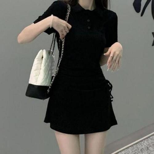 [셀러허브_여성트랜드패션]ONM 여성 슬림핏 캐주얼 반팔 카라 셔링 미니 여름