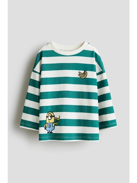 [에이치엔엠] 롱 슬리브 코튼 티셔츠 그린 스트라이프/미니언즈 1311968001