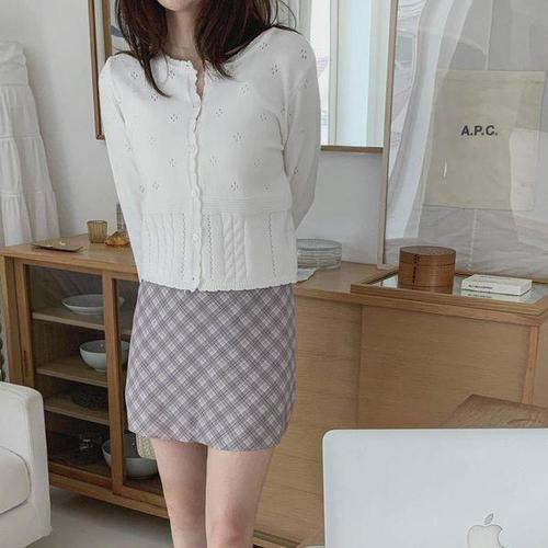 [다잇템]여성 미니멀리즘 백밴딩 패턴 쁘띠 체스 스커트