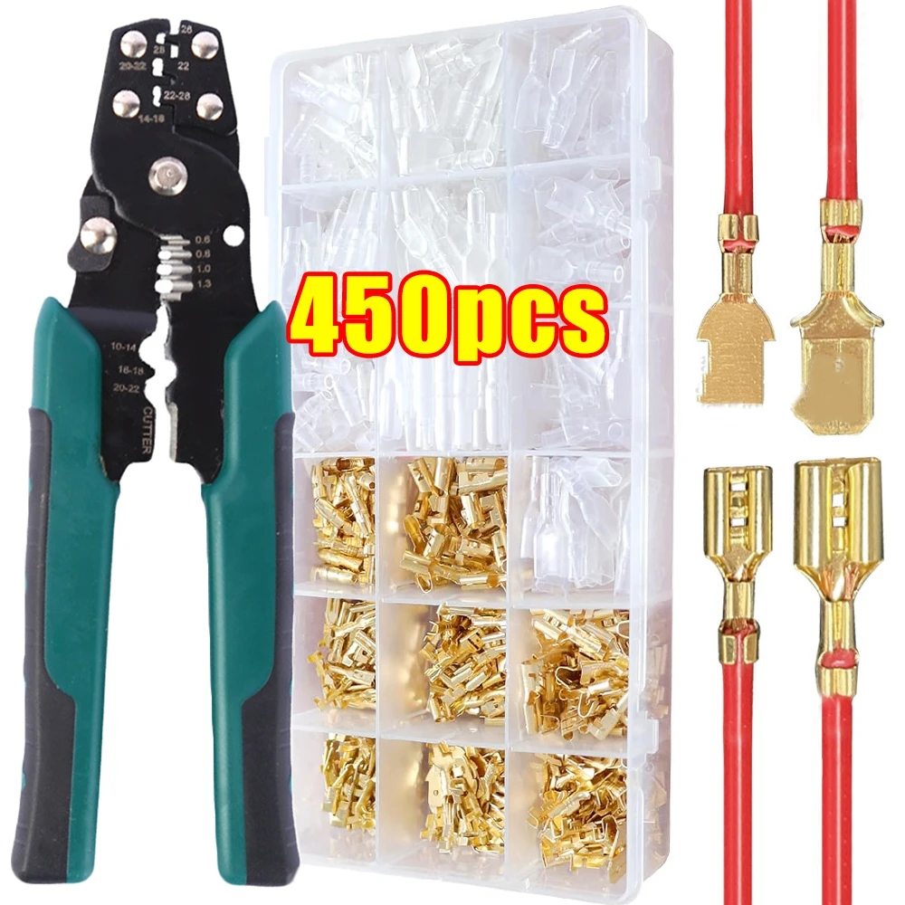 와이어 크림프 터미널 세트 2.8/4.8/6.3mm 구리 남성 여성 와이어 스페이드 커넥터(절연 슬리브 포함) 전기 커넥터 박스