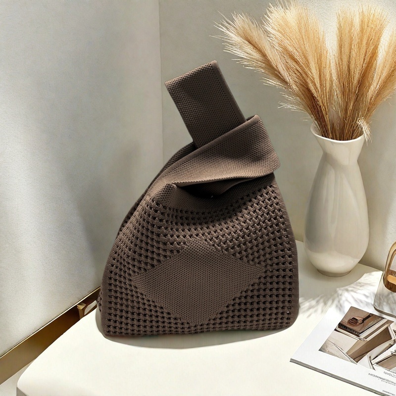 TEMU 1 멀티컬러 손목가방, 심플 빈티지 홀로우 아웃 대형 체크 패턴 폴리에스터 핸드백, 여성 토트백, 오픈탑 쇼핑 니트백, 매듭 크로셰 백, 패턴 여성 핸드백, 베스트백, 동전지갑, 레이디스백, 학생용 가방
