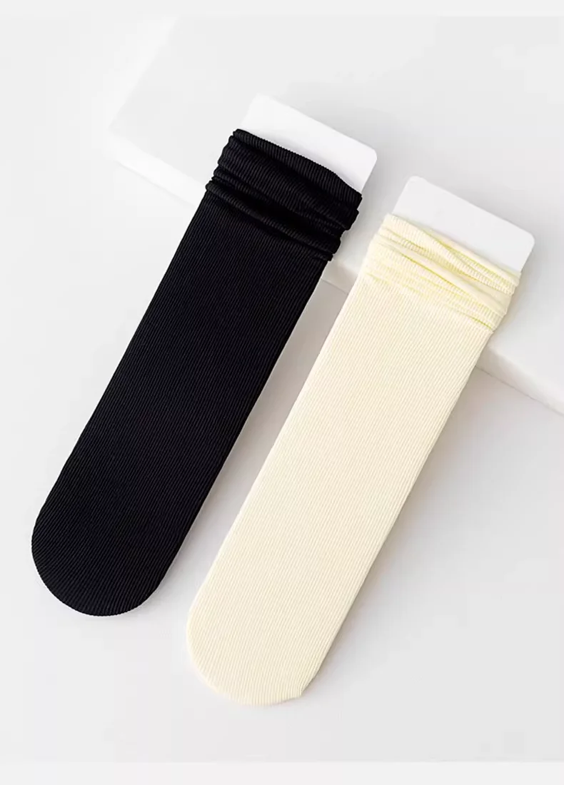 5/10켤레 여름 여성용 크루삭스 얇은 나일론 통기성 좋은 부드럽고 가벼운 귀여운 단색 캐주얼 니트 중목 양말