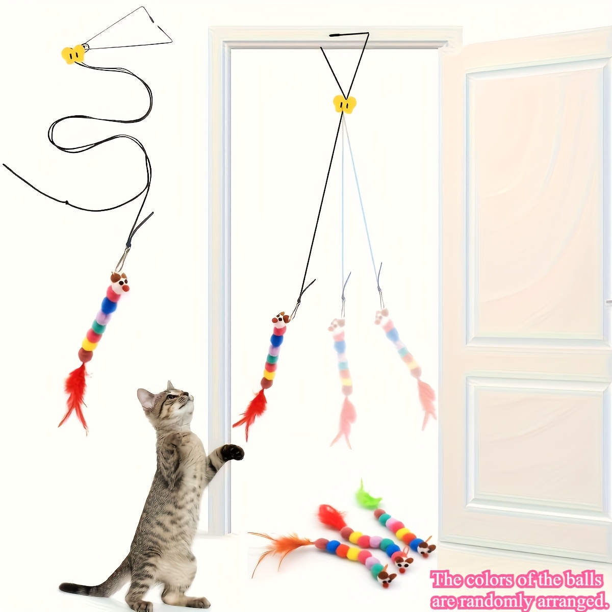 TEMU 1pc 조절 가능한 매달린 고양이 장난감, 아름다운 비즈 & 플러시 볼 - 모든 고양이 품종을 위한 자체 엔터테인먼트 스윙 스윙, 내구성 있는 인공 깃털, 내부 고양이용으로 쉽게 청소할 수 있는 실내 애완 동물 장난감, 재미있는 디자인, 깨끗한 애완 동물 액세서리, 배터리 없음