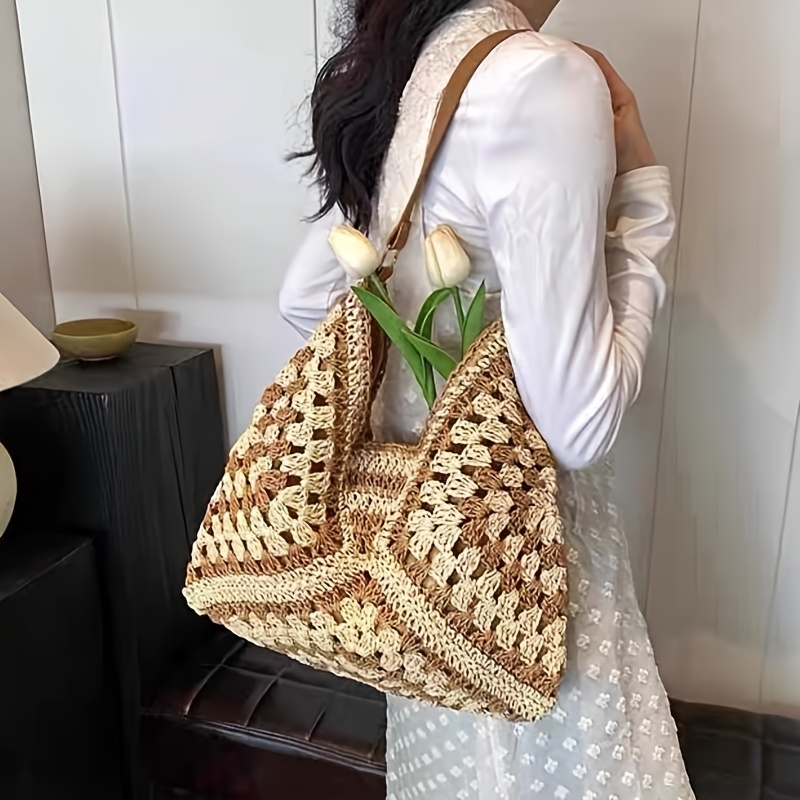 TEMU 4가지 컬러 옵션 여성용 토트백, 귀여운 디자인의 매그네틱 클로저가 있는 여름 해변 가방, 봄/여름 스타일링에 완벽한 짚 소재
