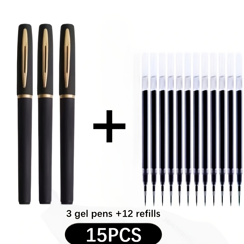 TEMU 15개입 고급 블랙 젤 펜 세트 (젤 펜 3개 + 리필 12개 포함), 대용량 젤 펜, 0.7mm 넓은 팁, 비즈니스, 사무실, 서명, 학교 서예 연습, 일상 필기용으로 적합