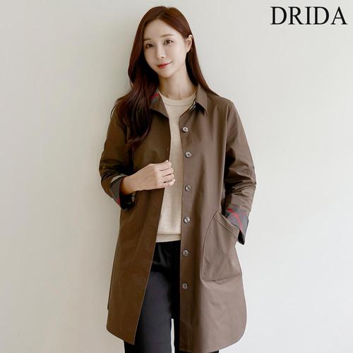 드리다 체크 배색 빅사이즈 바스락 메모리 롱 자켓 40-50대 미시 중년여성 엄마옷 하객 모임 출근