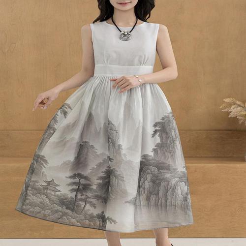 [드리다]여자 여름 린넨 마 빅사이즈 플레어 반팔 원피스 40-50대 미시 중년여성 엄마옷 하객 상견례 모..