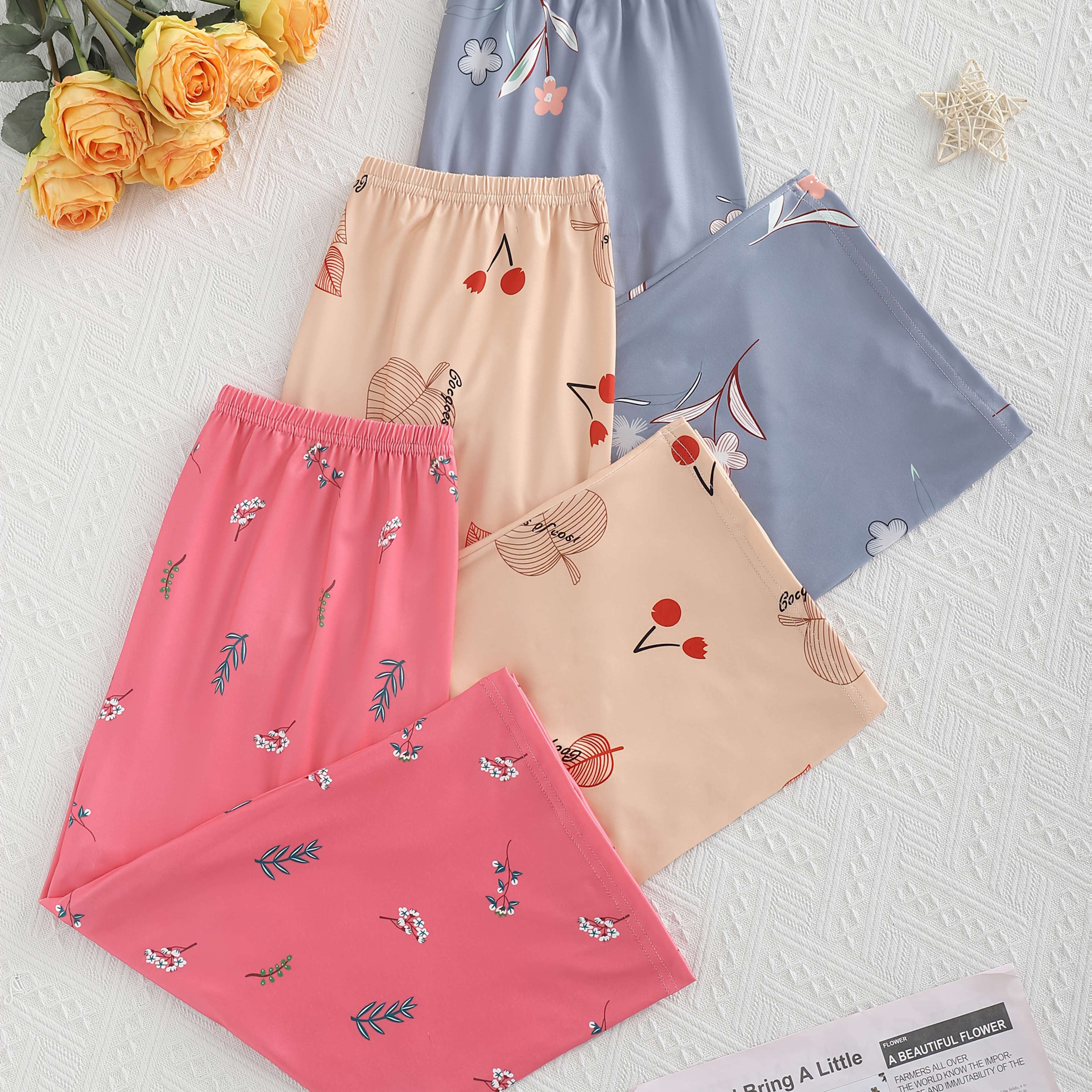 TEMU 꽃무늬 프린트의 편안한 캐주얼 7부 슬립 팬츠
