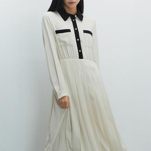 [미쏘]배색 플리츠 롱 원피스 (MIWOWCT23B-T)
