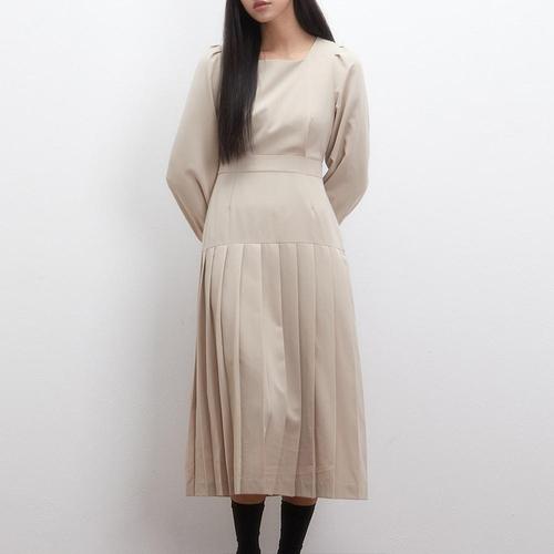 [미쏘]스퀘어넥 플리츠 롱 원피스 (MIWOWCT21B-T)