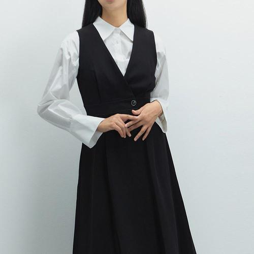[미쏘]사선 버튼 플리츠 원피스 (MIWOWBV01B-T)