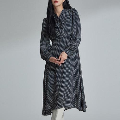 [미쏘]넥 타이 패턴 롱 원피스 (MIWOWC931B-T)