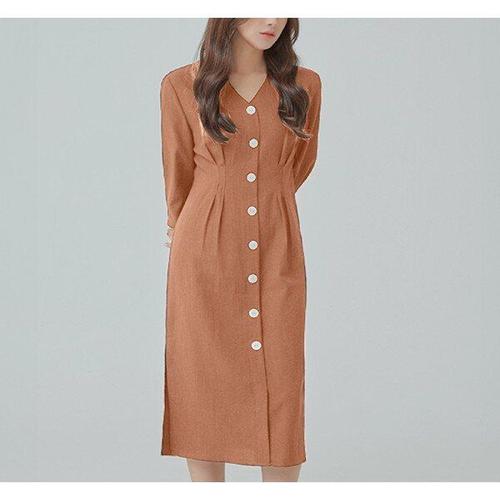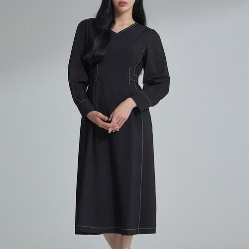 [미쏘]V넥 스티치 롱 원피스 (MIWOWC923B-T)