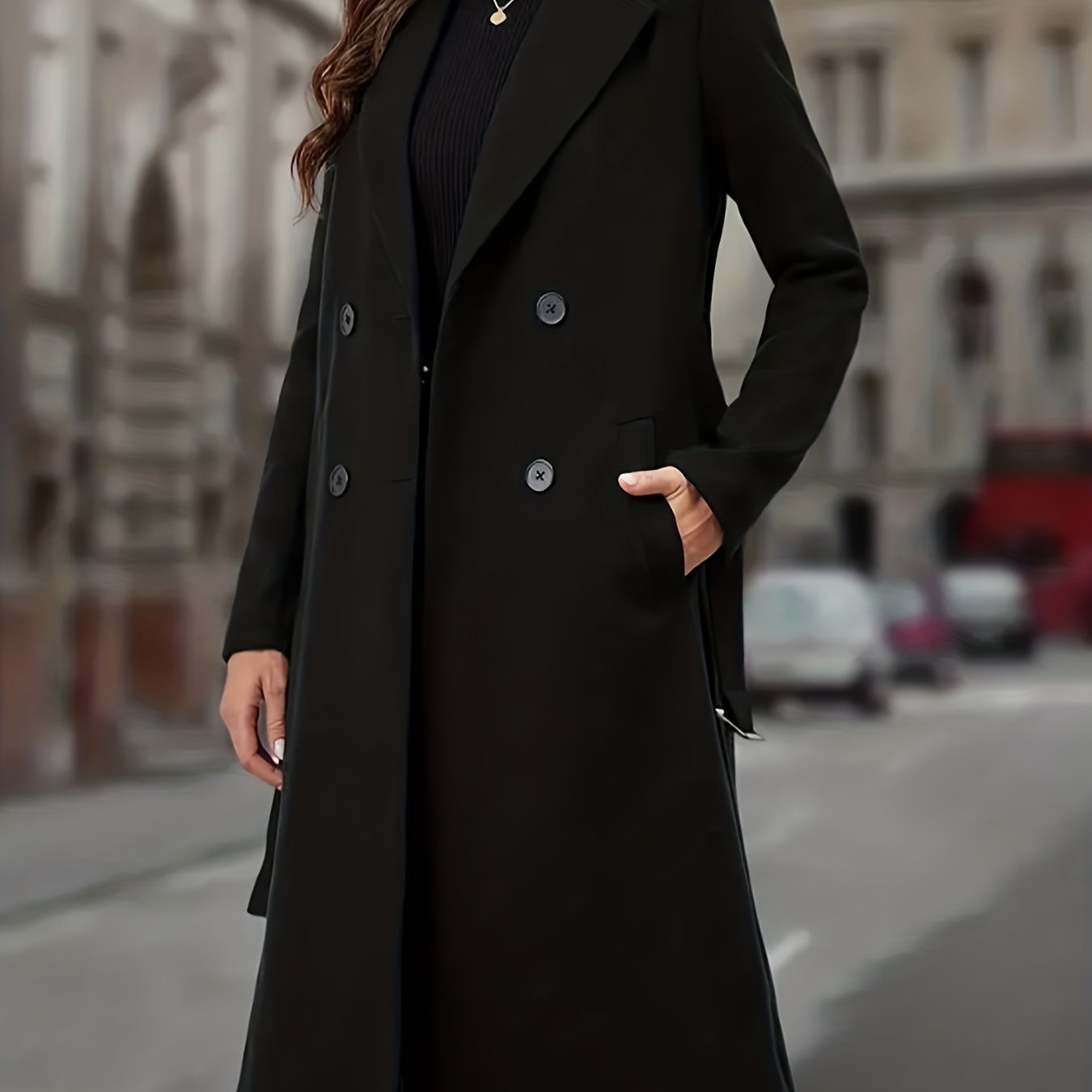 TEMU 여성용 우아한 더블브레스트 H라인 트렌치코트 - 긴 블랙 겨울 자켓, 칼라 & 노치 디자인, 세탁기 사용 가능, 포멀 이벤트와 캐주얼 룩에 어울리는 클래식 아우터웨어