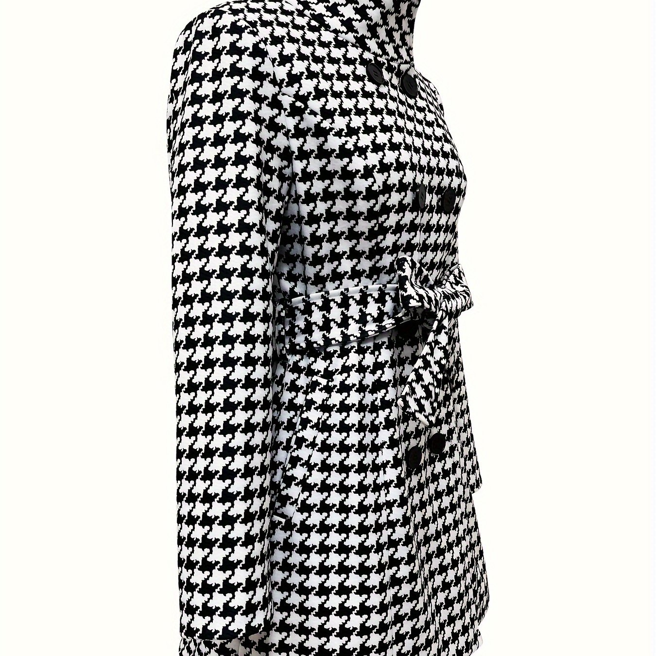 TEMU 여성용 우아한 하운드투스 코트 - 블랙 & 화이트 벨티드 겨울 트렌치코트, 노치드 라펠 & 버튼 프론트 클로저, 손세탁/드라이클리닝 가능, 가을 겨울 아우터웨어, 스타일리시 보온 내구성