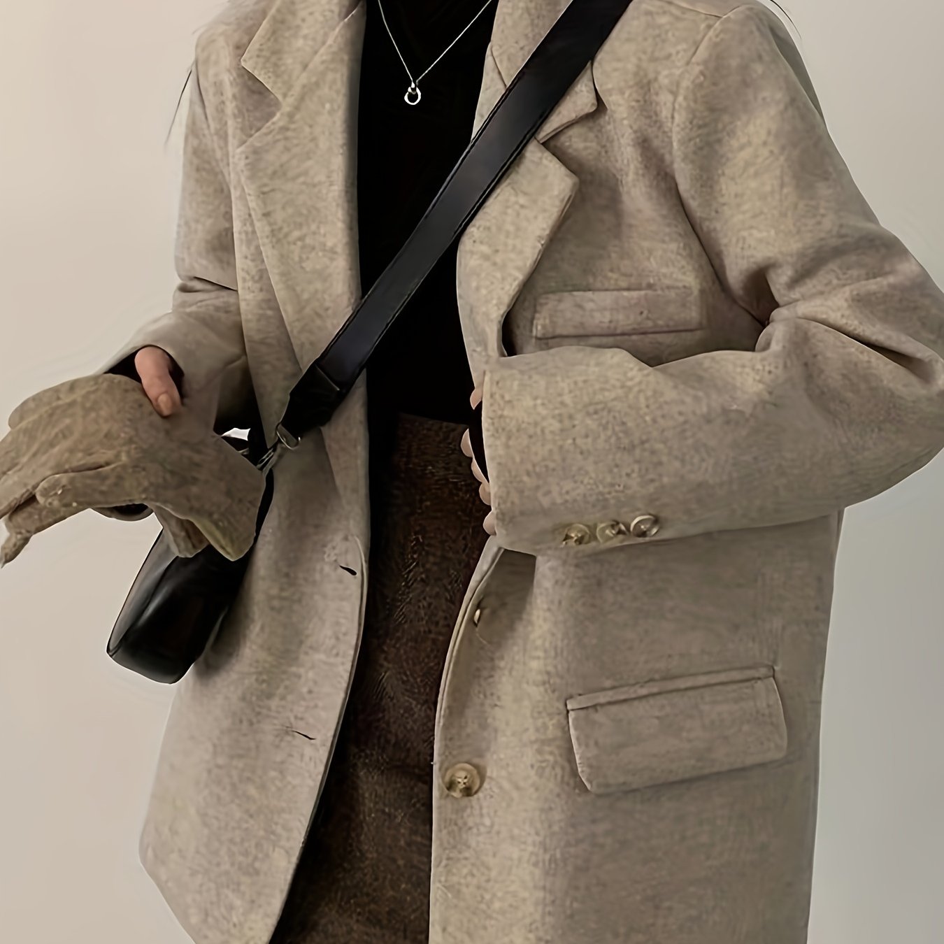 TEMU 여성용 겨울 트위드 코트 - 싱글 브레스티드 라펠 재킷, 노치 칼라, 루즈핏 따뜻한 아우터웨어, 베이지/브라운/탄 트렌치 코트, 캐주얼 & 프로페셔널 웨어, 한국 스타일 (손세탁 가능)|여성의류