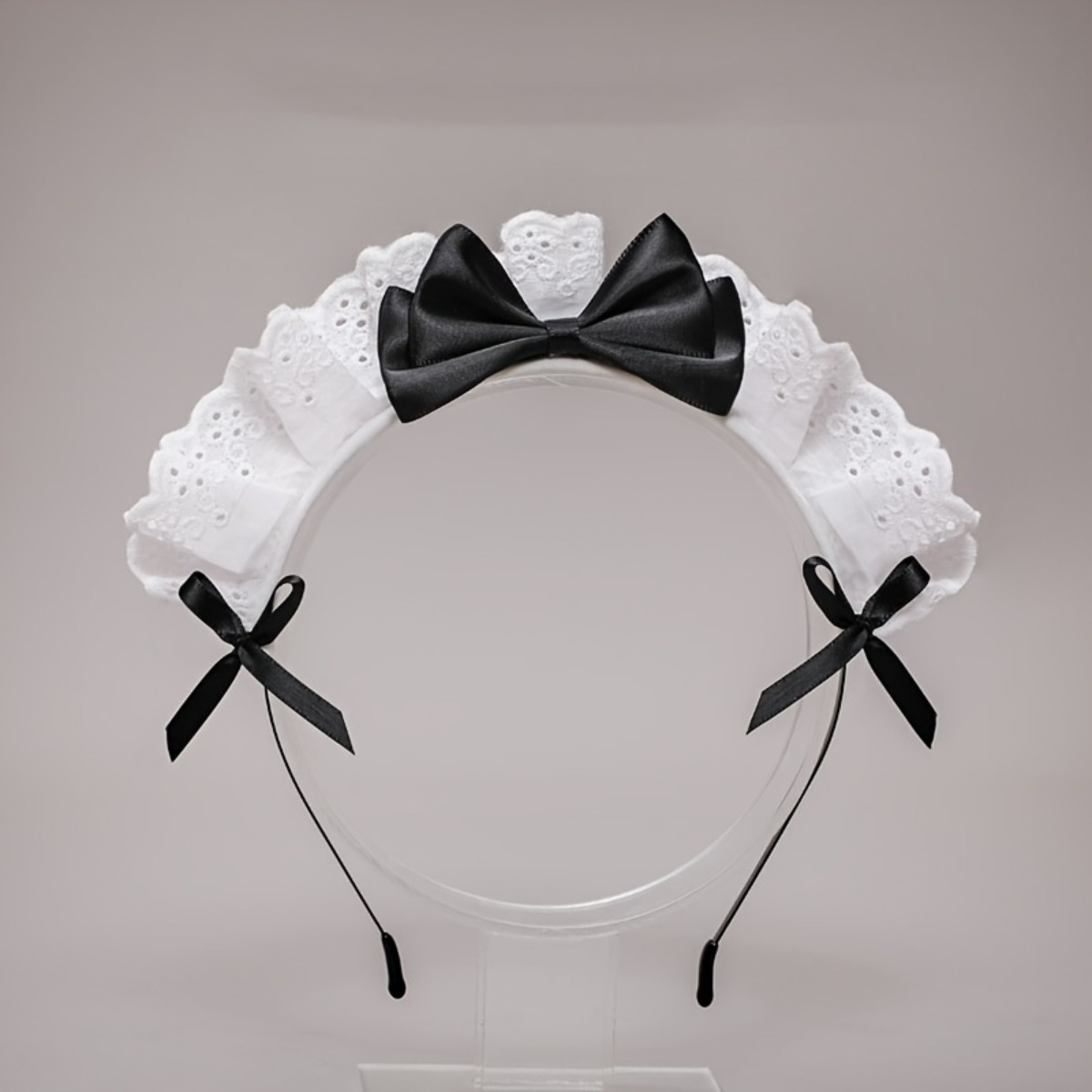 TEMU 우아한 프렌치 레트로 레이스 보우 헤어밴드 - 블랙 & 화이트, 폴리에스테르, 코스프레 & 할로윈용 다용도 메이드 스타일 헤어 클립, 귀여운 란제리 액세서리, 아웃어 헤어밴드, 헤어 클립