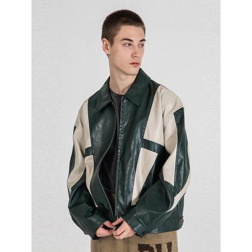 [비바스튜디오]칼라믹스 비건 레더 자켓 - GREEN