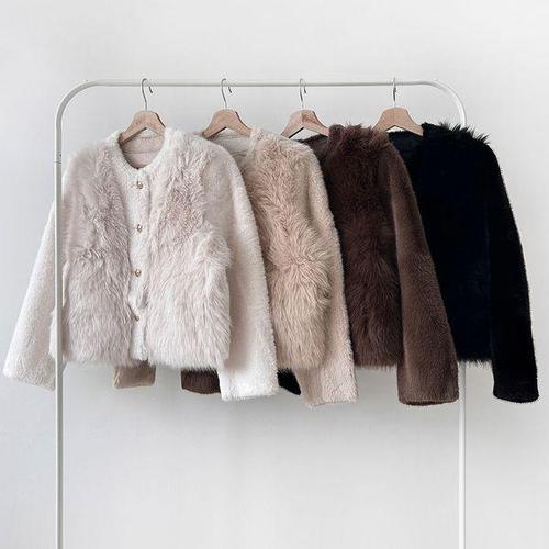 [다잇템][다잇템] 여성 믹스 단추 퍼 포인트 FUR 재킷 골드포인트 FW 트리밍 스타일_23764249_588872
