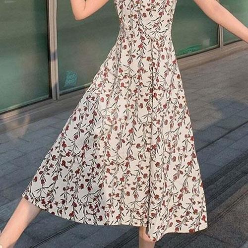 여성 플라워 무늬 끈나시 A라인 여친룩 원피스