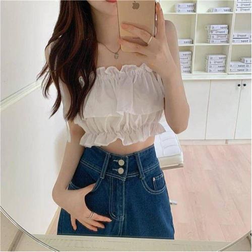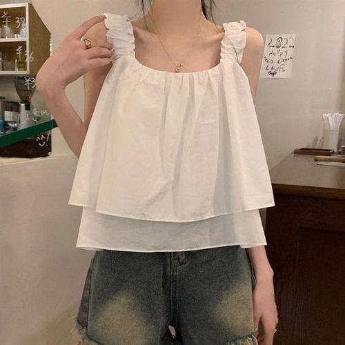여성 여름 프릴나시 블라우스 A라인 크롭 민소매