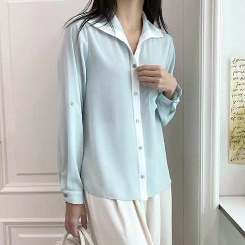 [VY] 여자 카라 민트 콘트라스트 부드러운 블라우스