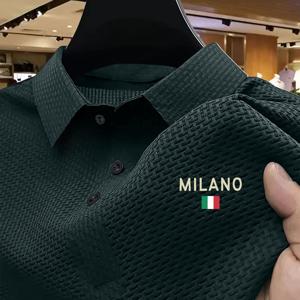 TEMU 밀라노 로고 프린트 남성 럭셔리 폴로 셔츠 - 화이트, 반팔, 편안하고 통기성, 여름 필수품, 가벼움, 신축성 있는 소재, 이상적인 선물, 캐주얼 여름 의류 | 캐주얼 스타일 | 편안한 핏