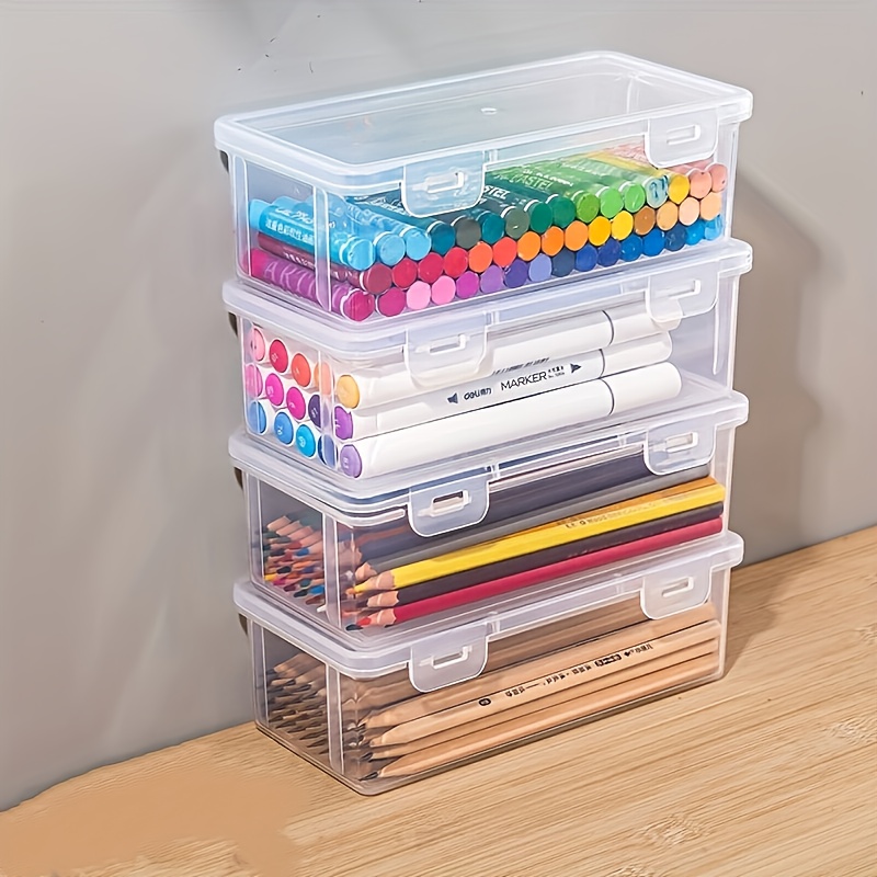 TEMU 플립탑 뚜껑이 있는 4pcs 플라스틱 보관함 - 헤비듀티 PP 레트로 & 오피스 정리함, 쌓을 수 있는 멀티 서랍 필통 - 투명 구획 라벨링 (책상, 선반, 연필 & 마커 홀더)