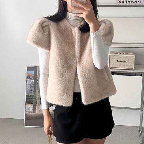 [신세계라이브쇼핑][옷자락] 여자 러블리 셔링 캡소매 소프트퍼 인조밍크 겨울 조끼