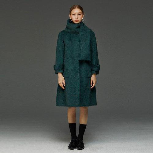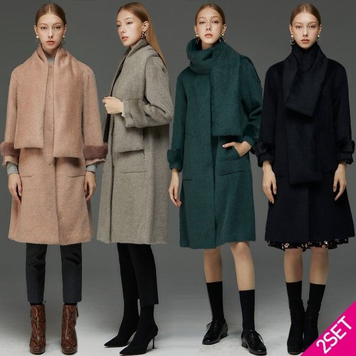 [르오트]고품격 천연밍크 포인트 알파카 울 롱코트 머플러 2종세트