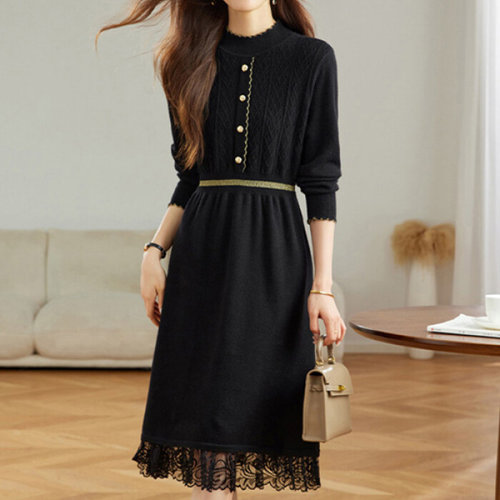 나바바 / NO958 여성 레이스 밑단 포인트 긴팔 니트 원피스