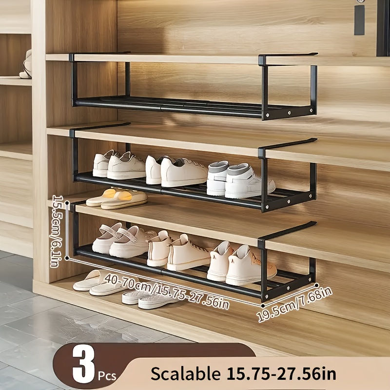 TEMU 조절 가능한 텔레스코픽 신발 정리대 - 거실, 옷장, 침실 및 기숙사를 위한 공간 절약형, 쌓을 수 있는 벽걸이형 신발 수납 솔루션. 설치가 용이한 다층 선반으로 공간을 절약하고, 노동절 선물로 완벽합니다.