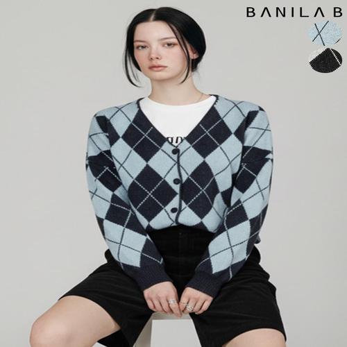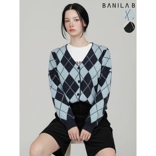 [바닐라비]여성 브이넥 아가일 크롭 가디건